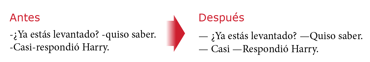 El paso siguiente es cambiar los guiones cortos por guiones largos.